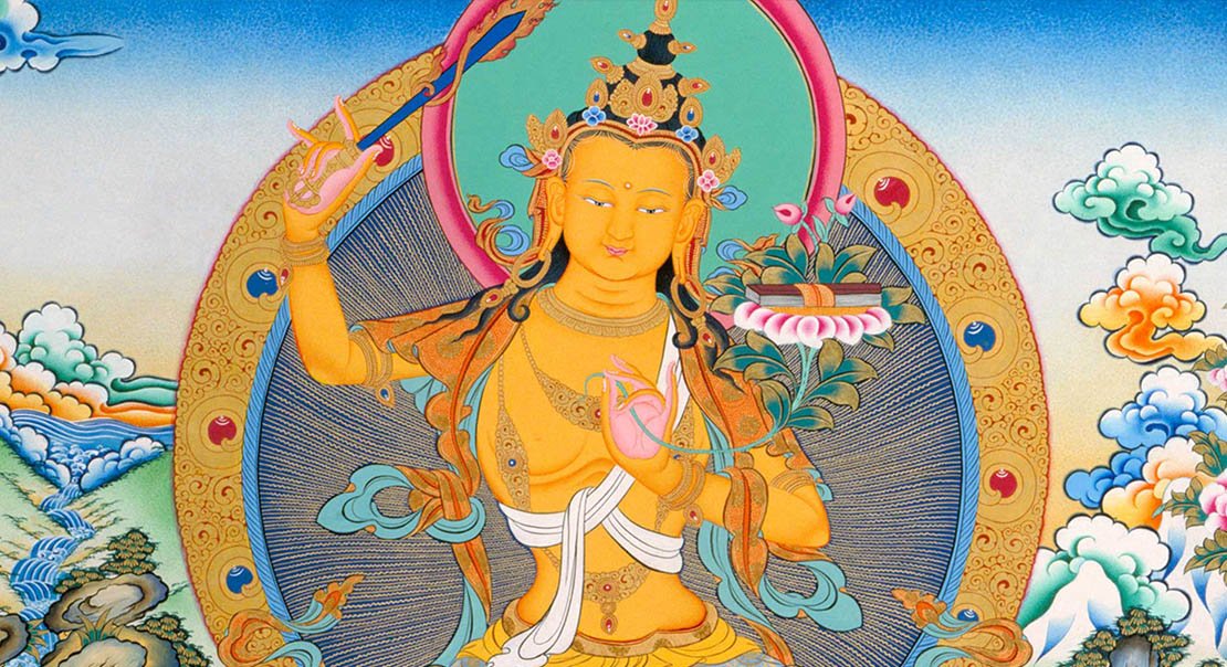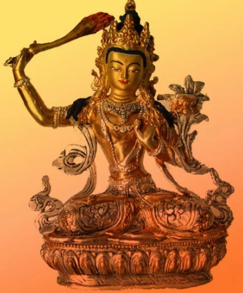Manjushri, "Gentle Glory" or "Sweet Splendor" in Sanskrit, is revered as one of the most important Bodhisattvas (enlightened Beings) in Tibetan Buddhism. He is known for embodying the highest ideals of wisdom, compassion, and spiritual realization and serves as a source of guidance and inspiration for practitioners seeking to attain the ultimate goal of Buddhahood (enlightenment) for the benefit of all sentient beings.