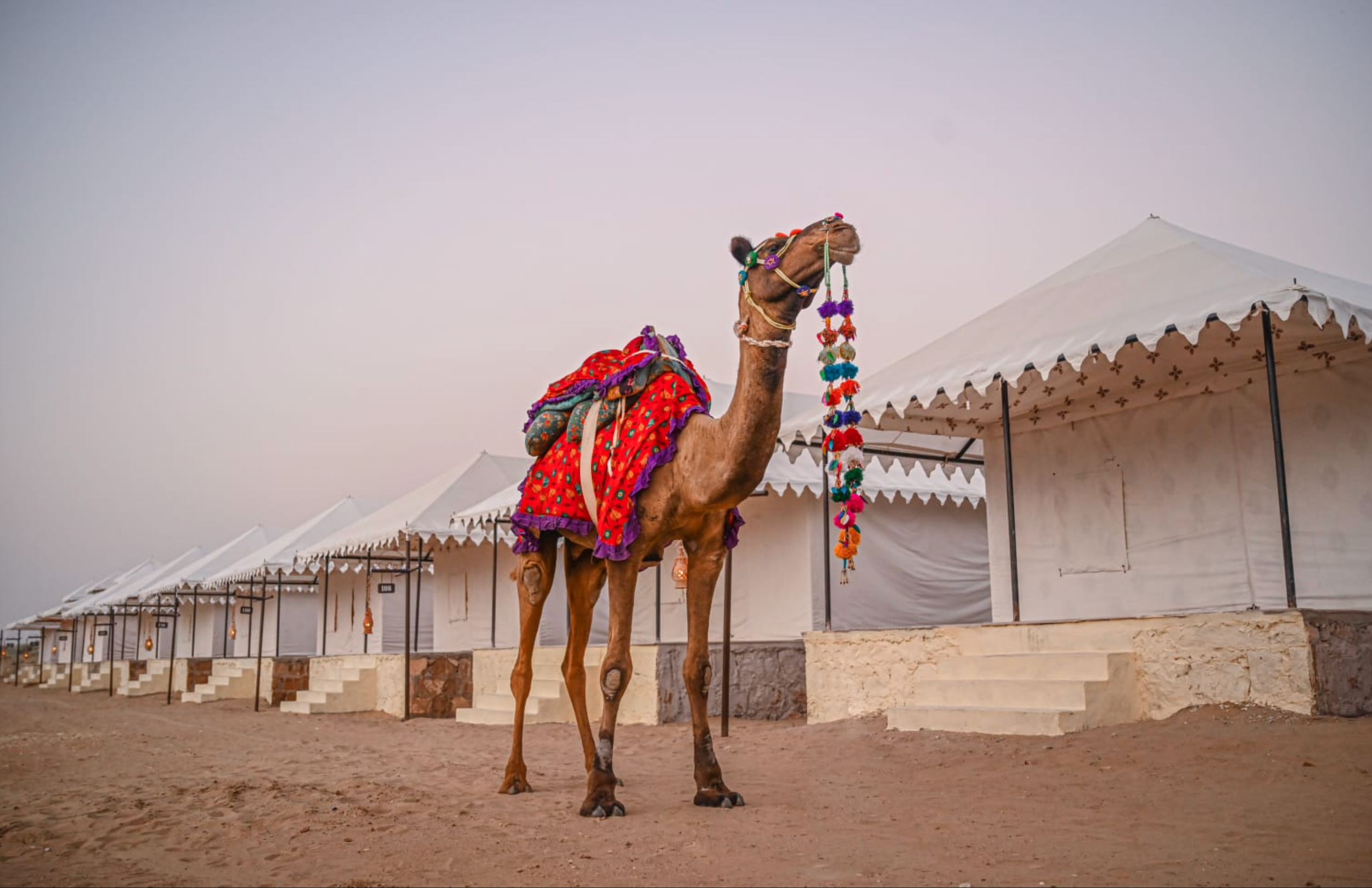 Desert Magic: Ride a camel across the shimmering Thar Desert, camp under a canopy of stars, and witness the surreal beauty of Sam Sand Dunes at sunset.